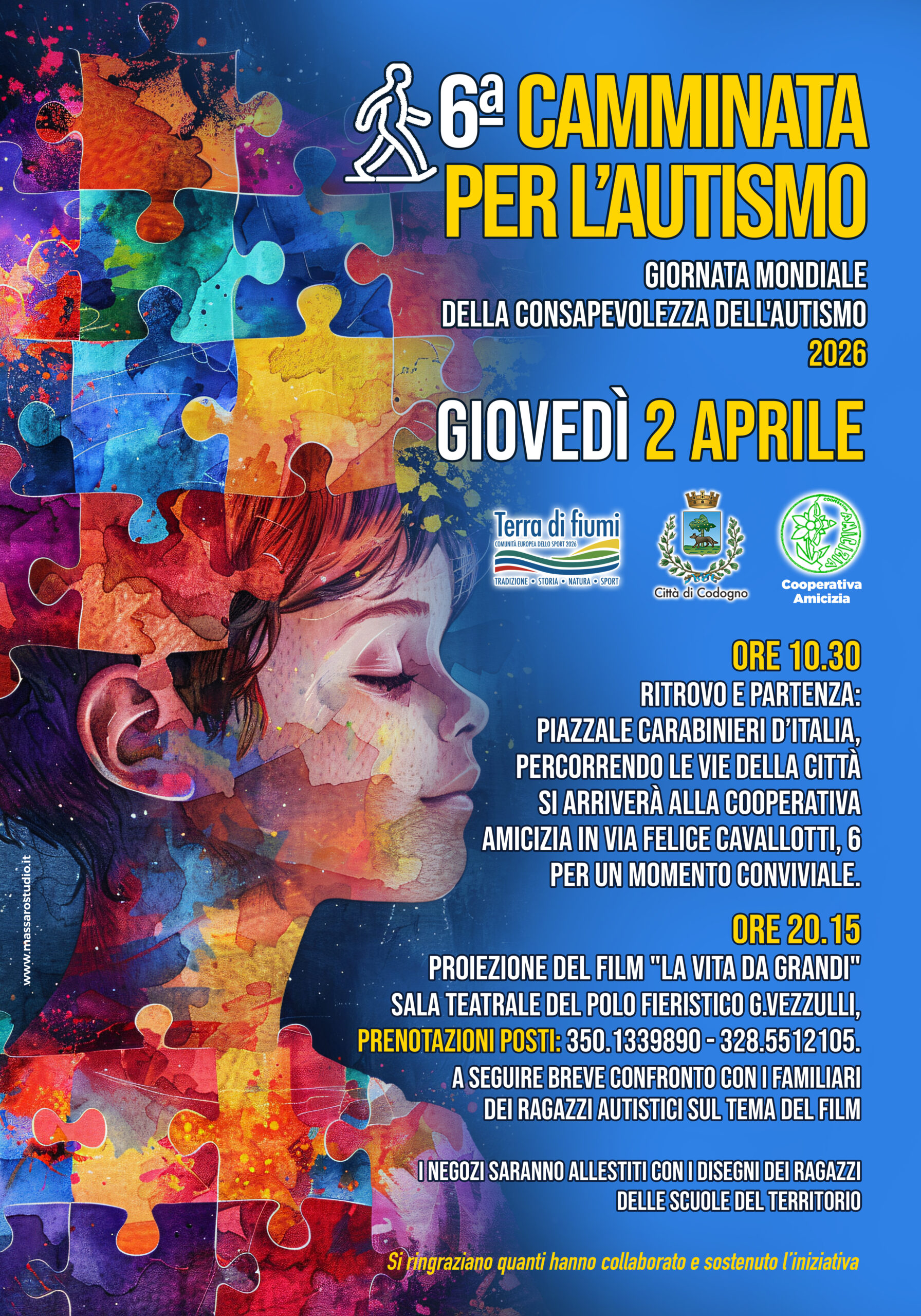 Giovedì 2 Aprile 2026, in occasione della Giornata Mondiale per la consapevolezza dell'Autismo e nell'ambito di "Terra di Fiumi – Comunità Europea dello Sport 2026", si terrà l’iniziativa denominata "Sesta camminata per l'autismo"