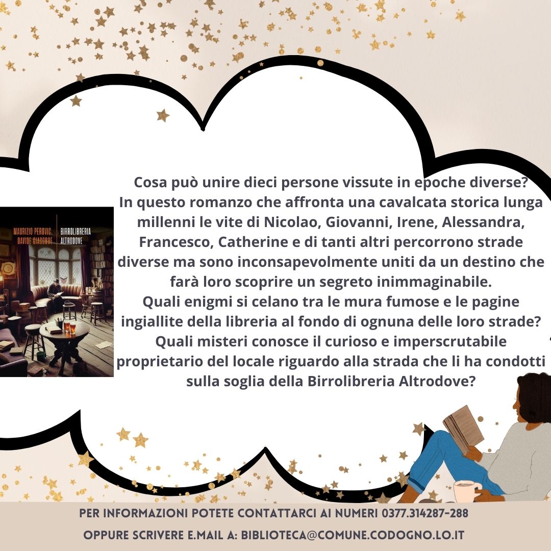 Per informazioni chiamate la Biblioteca ai seguenti numeri 0377314287/288 oppure scrivete all'e-mail biblioteca@comune.codogno.lo.it
