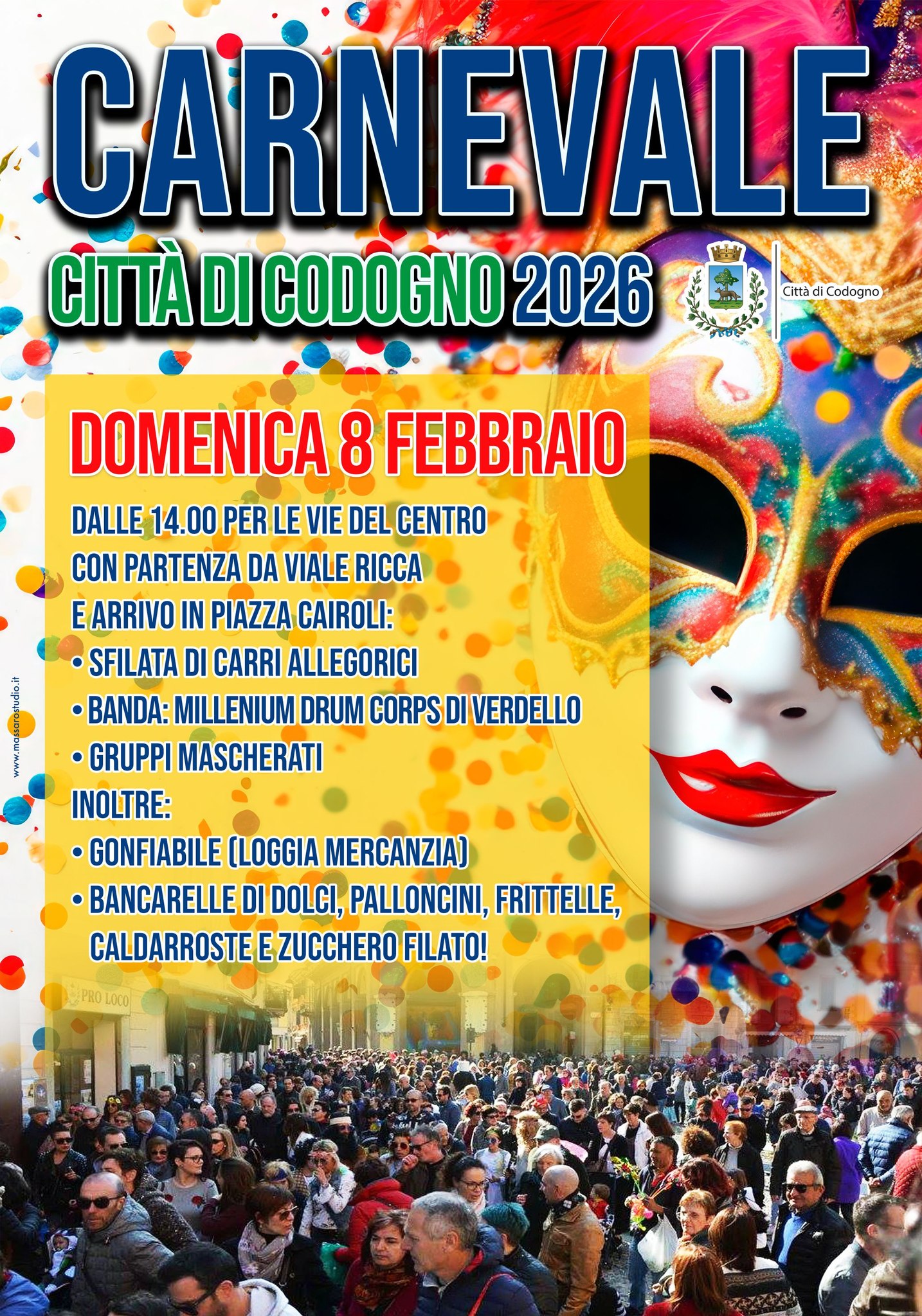 Domenica 8 febbraio torna l'appuntamento con il Carnevale con partenza da Viale Ricca (semaforo stazione) e arrivo in Piazza Cairoli passando per via Garibaldi, via Roma, via Vittorio Emanuele, via Cavour, via Cavallotti