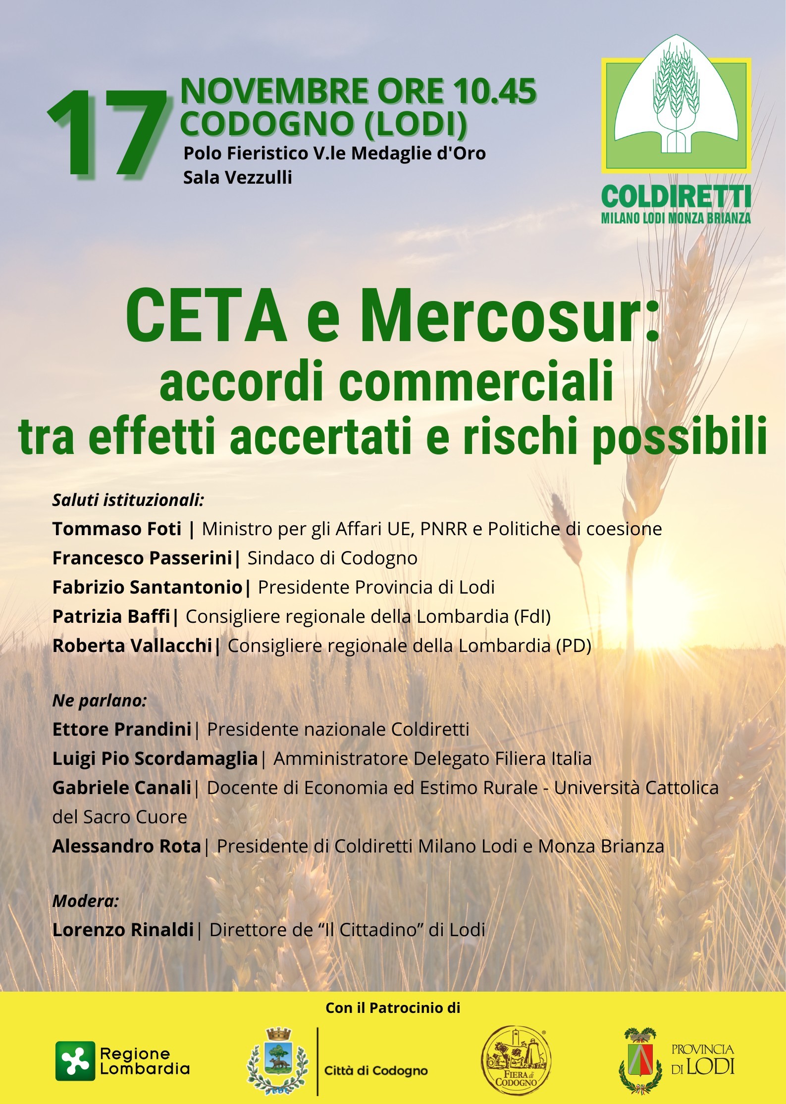 Lunedì 17 novembre 2025 alle ore 10:45 - Sala teatrale del Polo Fieristico Giuseppe Vezzulli V.le Medaglie D'Oro 1 Codogno