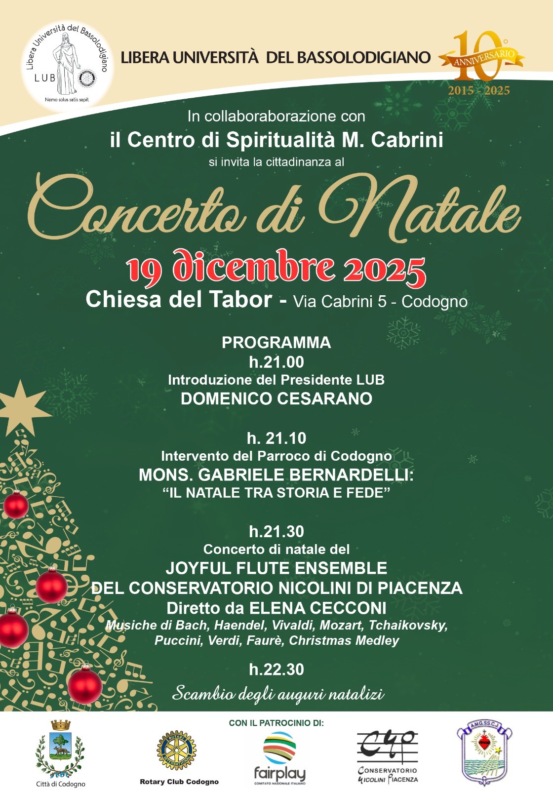 Venerdì 19 dicembre 2025 Chiesa del Tabor – Via Cabrini 5 Codogno