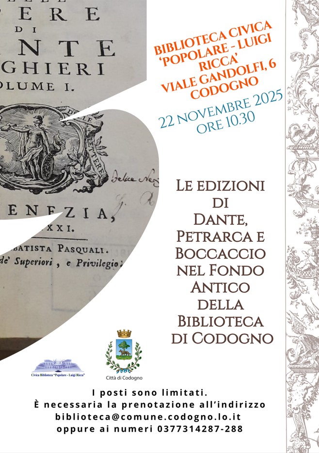 Le edizioni di Dante, Petrarca e Boccaccio nel Fondo Antico della Biblioteca di Codogno.