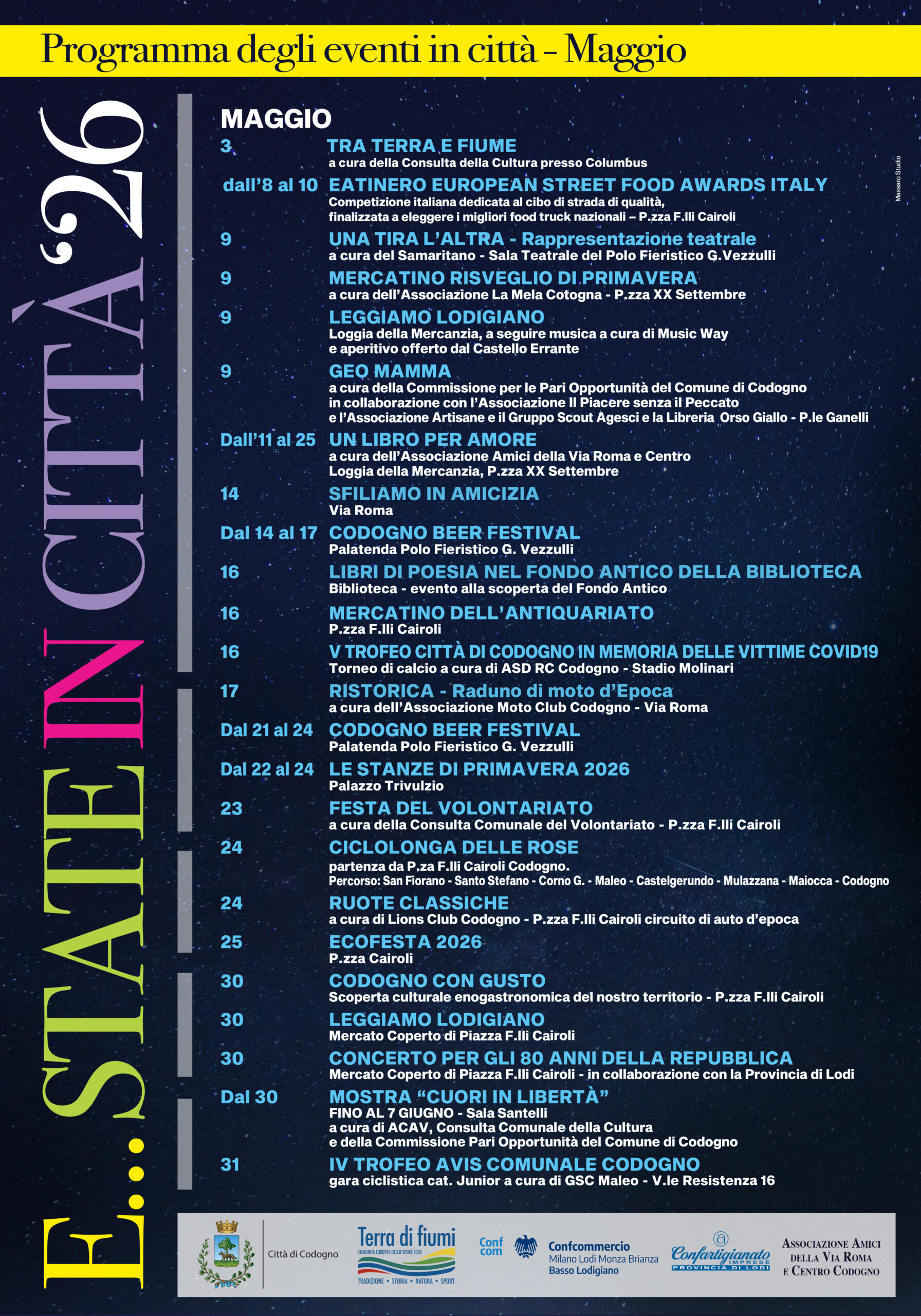 Programma degli eventi in città Maggio/Settembre 2026
