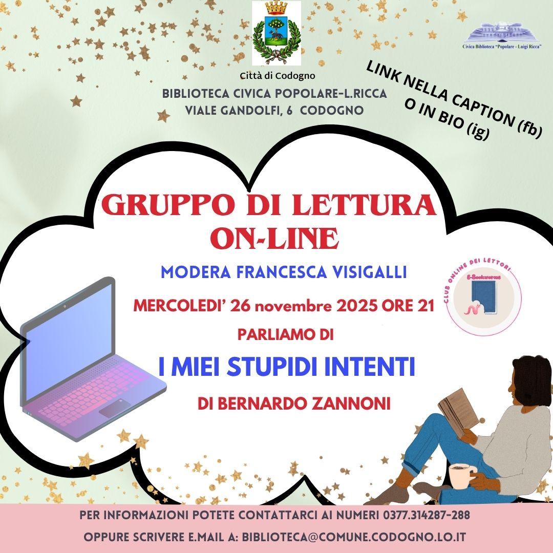 Mercoledì 26 novembre: Libro "I miei stupidi intenti" di Bernardo Zannoni