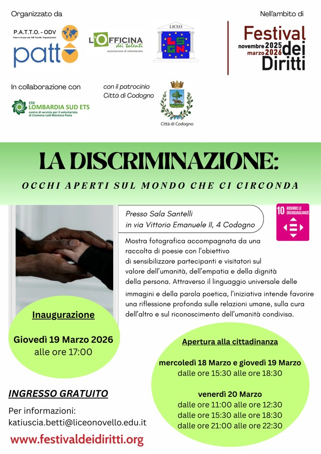 Mostra fotografica accompagnata da una raccolta di poesie con l'obiettivo di sensibilizzare partecipanti e visitatori sul valore dell'umanità, dell'empatia e della dignità della persona. Attraverso il linguaggio universale delle immagini e della parola poetica, l'iniziativa intende favorire una riflessione profonda sulle relazioni umane, sulla cura dell'altro e sul riconoscimento dell'umanità condivisa.