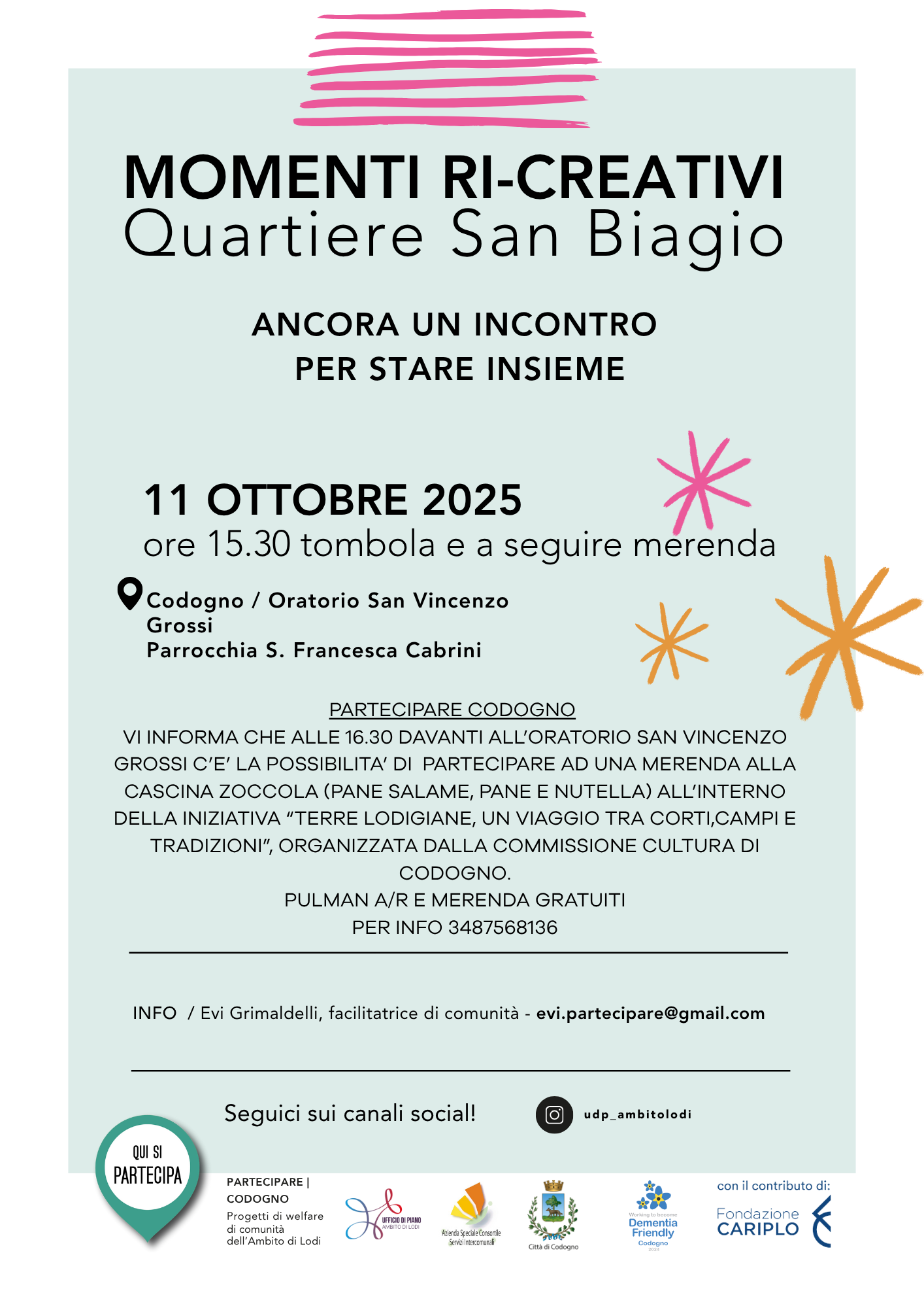 Sabato 11 ottobre 2025 alle ore 15:30 - Codogno oratorio San Vincenzo Grossi Parrocchia S. Francesca Cabrini