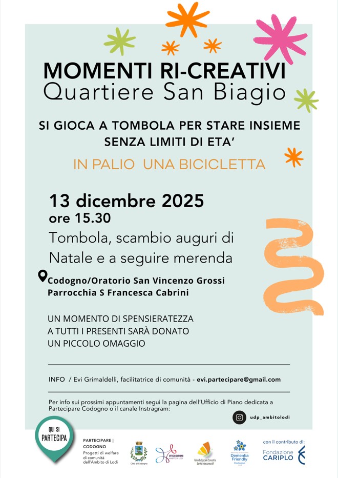Sabato 13 dicembre 2025 alle ore 15:30 - Codogno Oratorio San Vincenzo Grossi Parrocchia S. Francesca Cabrini