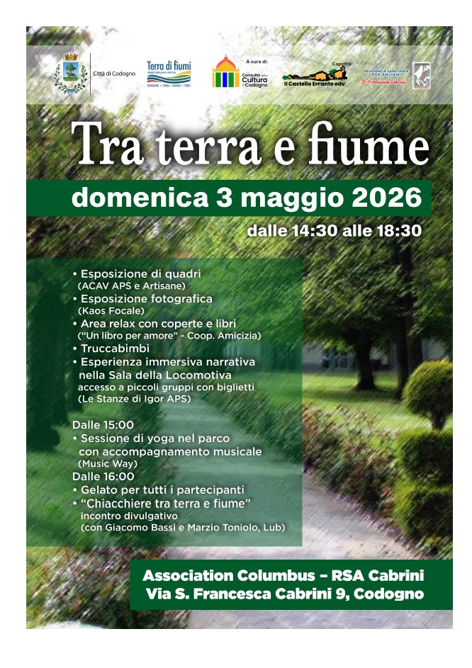 Domenica 3 maggio 2026 dalle ore 14:30 alle ore 18:30 presso Association Columbus – RSA Cabrini Via S. Francesca Cabrini 9 Codogno