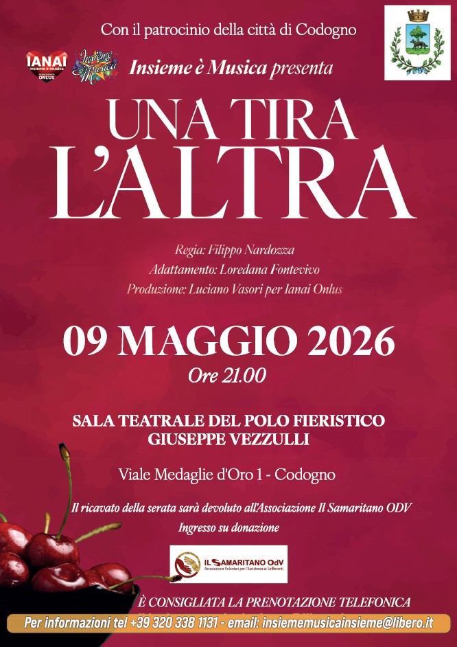 Sabato 09 maggio 2026 alle ore 21:00 presso la Sala Teatrale del Polo Fieristico Giuseppe Vezzulli Viale Medaglie D'Oro n. 1 Codogno